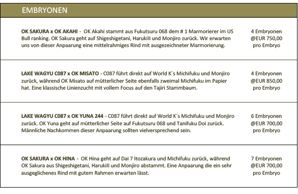 Alternativ bieten wir Ihnen auch an, bei Ihrem Kuhstamm Wagyu Embryonen einzusetzen.